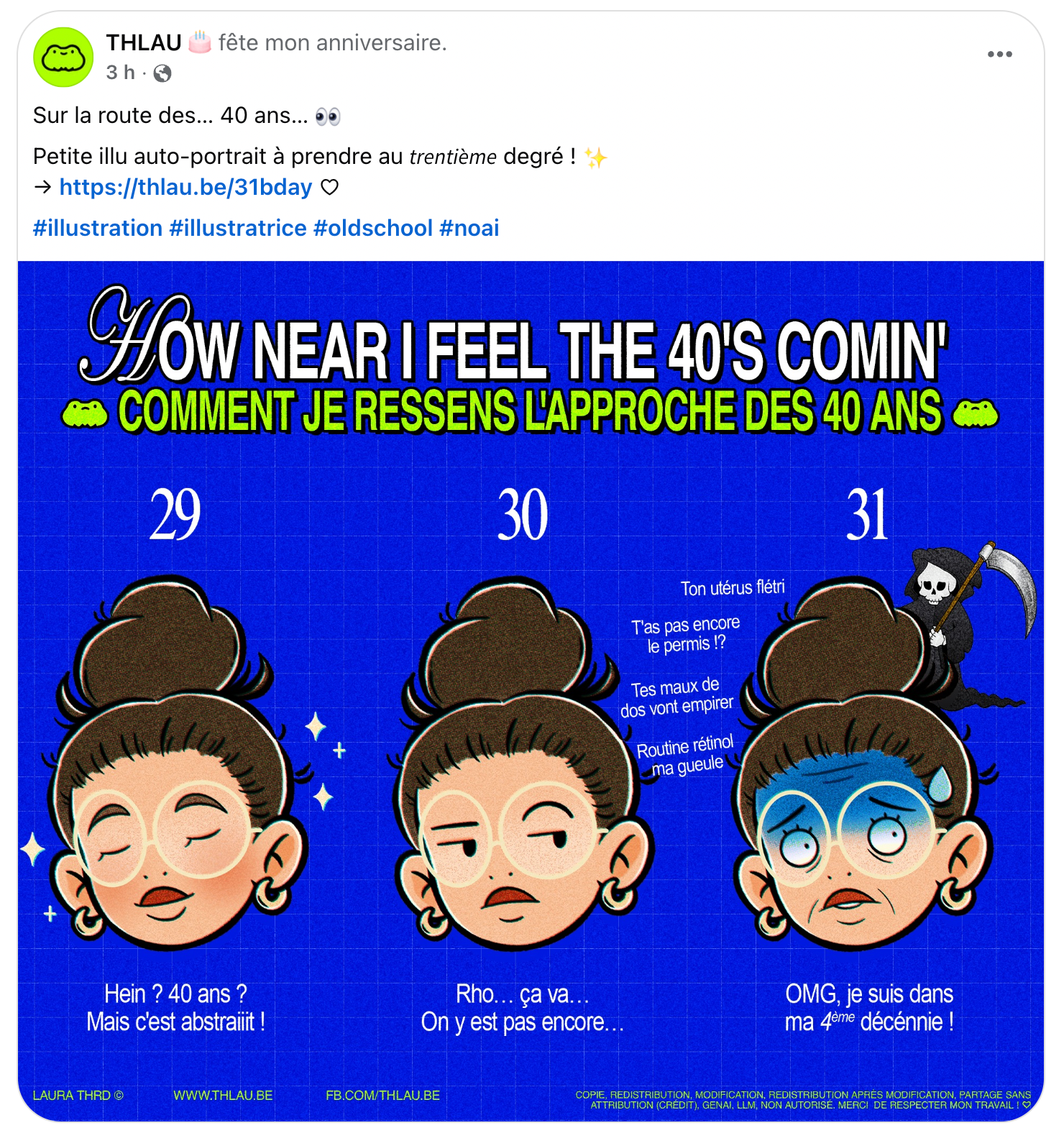 Petite bande dessinée en 16 cases carrées réalisées dans Procreate.