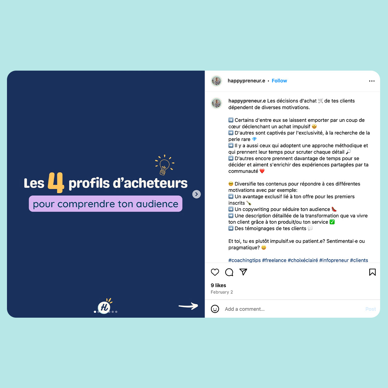 Posts Instagram et LinkedIn pour l'agence indépendante Happypreneur·e